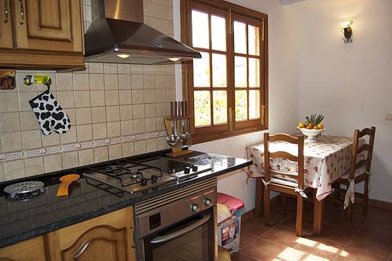 La casa se compone de 2 dormitorios dobles + 1 cama supletoria y 1 cuna. * 1 con cama de matrimonio de 1.50 x 2.00. * 1 con 2 camas individuales de 0.90 x 2.00 * 1 baño completo con ducha. * 1 cocina separada totalmente equipada, con cafetera Melita,hervidor de agua,horno grande,cocina de gas y eléctrica ,tostadora,y lavadora. * TV con canales españoles . * Radio-CD. * Agua caliente a través de placa solar y bomba de calor eléctrica. * Mascotas bienvenidas.