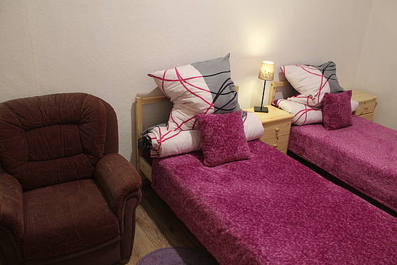 Hübsche preiswerte Ferienwohnung Das Appartement liegt zentral unweit der Innenstadt. Das helle Appartement ist 60 qm groß und ideal für vier Gäste. Eine neue Küche mit Eßecke, Bad, Flur und zwei Zimmer mit Wohn-Schlafbereich warten auf Sie.