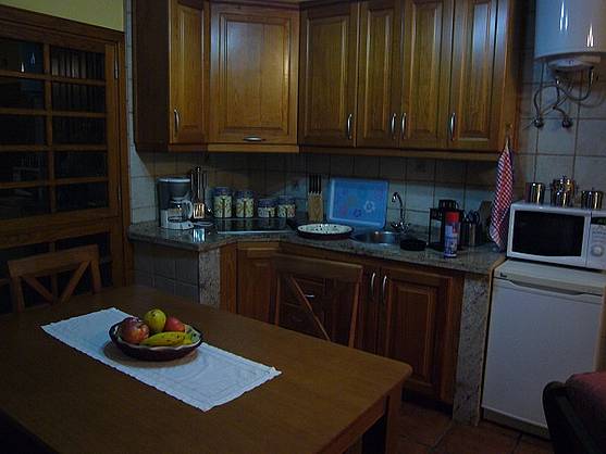 * Dos dormitorios con dos camas individuales cada uno, sofa-cama y cuna. * Roperos, cómodas y mesas de noche; baño completo con bañera; salón-comedor y cocina, TV con antena parabólica. Menaje de hogar y lencería completos, lavadora, estufa, televisión, equipo de música, microondas, vitrocerámica, tetera eléctrica, plancha, secador de pelo etc... * Aparcamiento, terraza y barbacoa. * Mobiliario de estilo rústico.