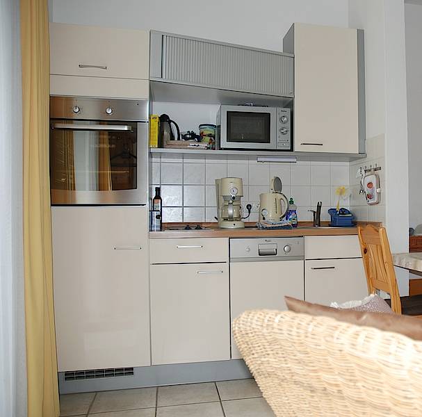 Die Fewo ist 33qm groß und für 2 Personen ausgelegt. Von der Terrasse gelangen Sie in den Wohnbereich, in dem Sie gemütlich auf dem Rattansofa und Sessel Platz nehmen können. Im Wohnbereich befindet sich auch die Einbauküche (Komplettausstattung) und der Essbereich. Das separate Schlafzimmer mit Doppelbett, Kleiderschrank und das Badezimmer mit Dusche/WC und vielen Annehmlichkeiten (Föhn, Kosmetikspiegel, Toilettenpapier uvm) befindet sich im hinteren Teil der Ferienwohnung. Hund auf Anfrage erlaubt.