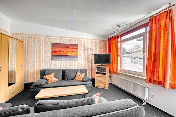 - gemütliches Apartment mit zwei großen Schlafcouchen mit Federkernausstattung (Dauerschlafqualität)