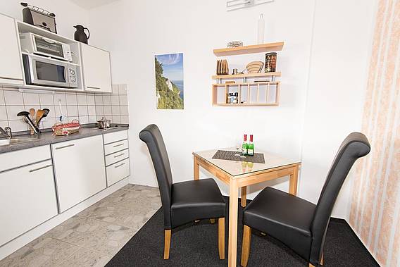 Sehr gemütliches und liebevoll eingerichtetes Appartement bei Lohme. Mit kleiner Einbauküche und Esstisch eine preisgünstige Alternative. In direkter Nachbarschaft zum Nationalpark mit seinem Königsstuhl, Kreidefelsenküste und Weltnaturerbe Buchenwälder.