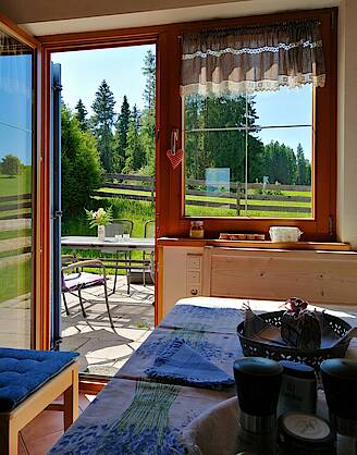 Unser Ferienhaus im alpenländischen Stil liegt in ruhiger Waldrandlage oberhalb des Lechbrucker See.
