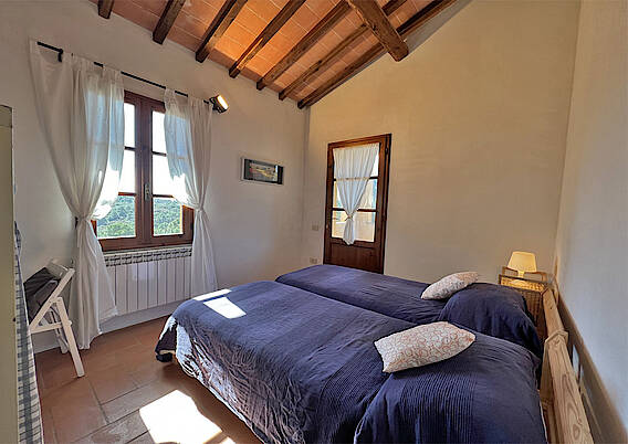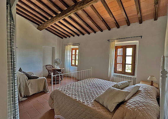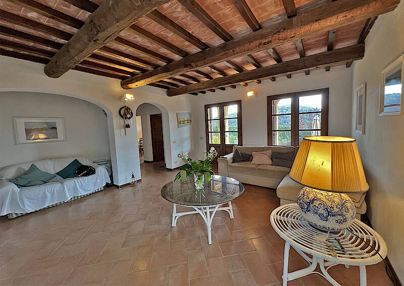 Das Haus Rosa dei Venti ist im traditionell toskanischem Stil eingerichtet. Es hat Terracottaböden, Holzgebälkdecken und ein geräumiges Wohnzimmer mit Sat TV. Ebenfalls im Erdgeschoss befindet sich ein kleines Bad und eine komplett eingerichtete Küche mit Zugang zur Loggia. In den oberen Stock kommt man über eine Holztreppe. Dort befindet sich ein Doppelbettzimmer mit Balkon und Meerblick. Außerdem noch ein Doppelstockbett-Zimmer ebenfalls mit Balkon und Meerblick und ein weiteres Doppelzimmer mit geräumigem Badezimmer, mit Badewanne und Dusche.
