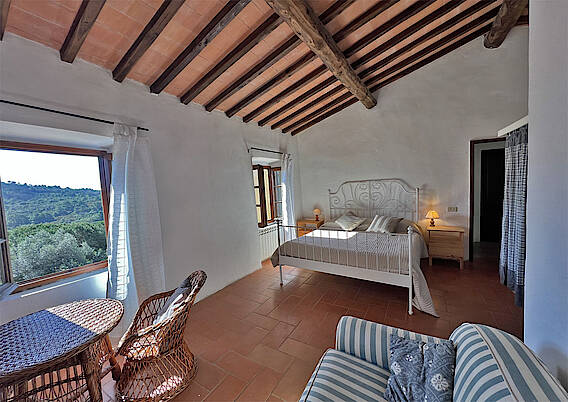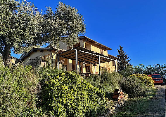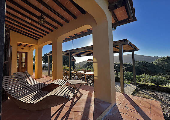 Porto Azzurro ist der nächste Hafen mit Boots - und Schlauchbootverleih, Supermarkt und Restaurants. Dagegen fährt die Fähre von Piombino nach Rio Marina, welches 8 km vom Haus entfernt liegt. Das Haus bietet einen Blick in der Ferne auf das Meer von Porto Azzurro und ist zirka 200 Meter von der Komunalstrasse entfernt über einen Feldweg erreichbar, welcher Ruhe und Zurückgezogenheit des Hauses garantiert. In zirka 5 Minuten Fahrtzeit mit dem Auto sind das Meer und der Strand von Terranera mit dem kleinen See am Strand, und die Bucht Golfo Reale, erreichbar.