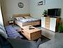 Das Ferienhaus ist vom Deutschen Tourismusverband mit *** Sternen ausgezeichnet. Es hat ein großes, geschmackvoll eingerichtetes Wohn-/Schlafzimmer mit Essecke, Sofa, Sessel u. . .