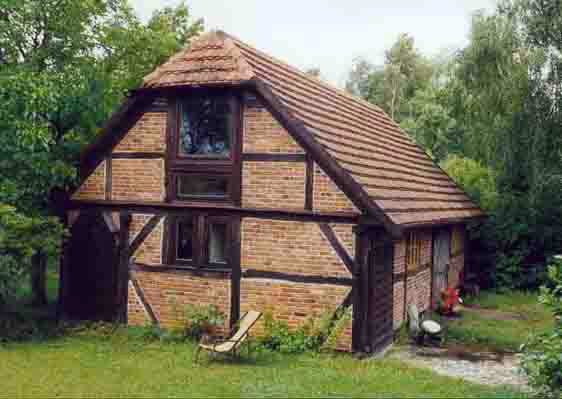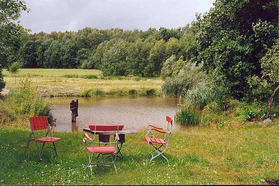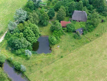 Mit Blick auf die weite mecklenburgische Landschaft liegt in idyllischer Dorfrandlage das alte Fachwerkhaus mit Sauna. Auf dem 3000 m2 großen parkartigen Hausgrundstück befindet sich ein Naturteich.